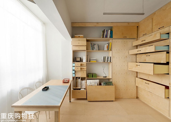 ▲ 地板上墻,圍一個(gè)小小的工作區(qū)