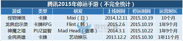 不過(guò),在2015年,騰訊發(fā)行的產(chǎn)品中,據(jù)不完全統(tǒng)計(jì)已出現(xiàn)4款停運(yùn)游戲且集中在10月份。