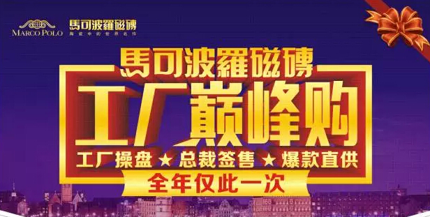 馬可波羅瓷磚工廠巔峰購,工廠操盤,活動期間,由工廠“價格督導專員”現(xiàn)場監(jiān)督,以工廠價直銷,錯過再等三年。