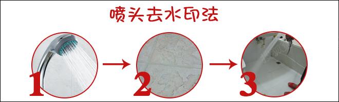 ① 噴頭去水印法:淋浴后順手將噴頭調(diào)節(jié)到冷水位,并對(duì)周?chē)膲Ρ谏约訃娏?,這樣可以避免瓷磚出現(xiàn)凝結(jié)的水印。