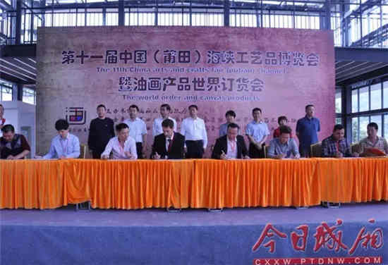 莆田建材網(wǎng)4月29日訊(今日城廂 報(bào)道)4月28日上午,第十一屆中國(莆田)海峽工藝品博覽會暨油畫產(chǎn)品世界訂貨會在莆田(國際)油畫城隆重開幕,國內(nèi)外采購商代表與油畫城企業(yè)代表上臺簽訂意向訂貨合同。莆田市副市長李伙金,城廂區(qū)委書記林樺,區(qū)長許建平,區(qū)人大常委會副主任王烏妹,副區(qū)長黃美光、于曉棟等出席開幕式。