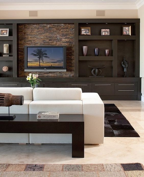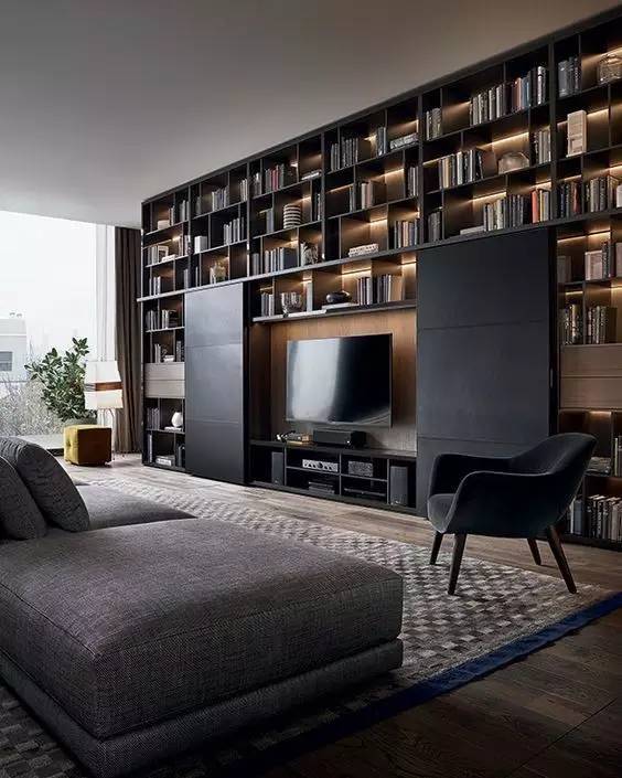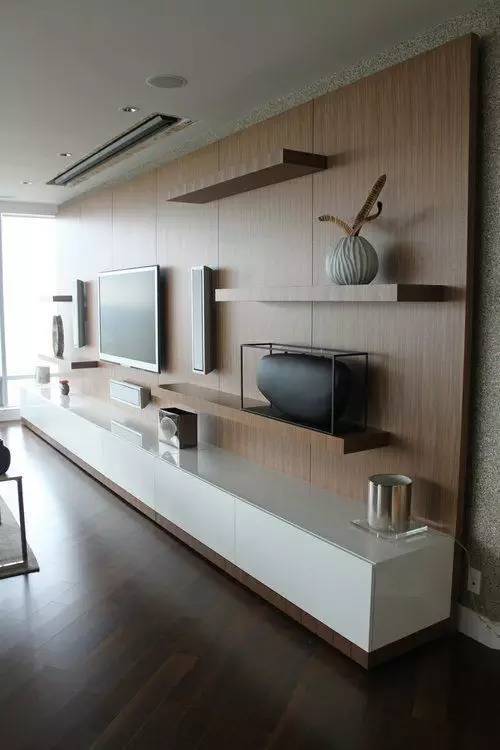 ▼家具首先就應(yīng)該以實用為主~以下這幾款整體柜式電視背景,既沒有浪費(fèi)整面墻,又可以收納不少雜物。還能夠擺上好看的裝飾品,看起來很有品味哦~