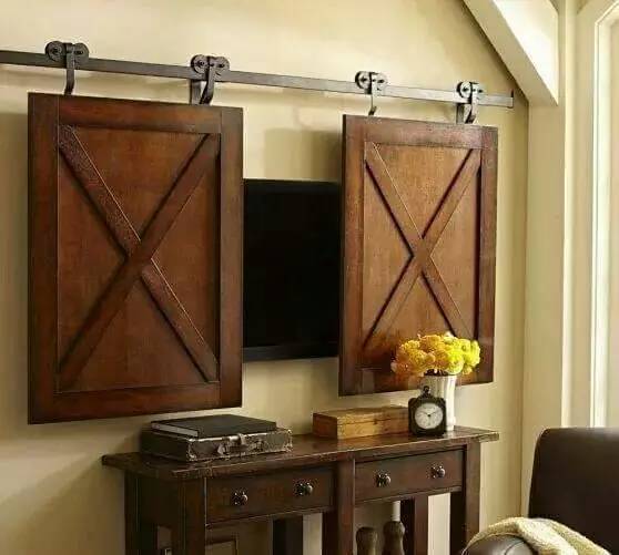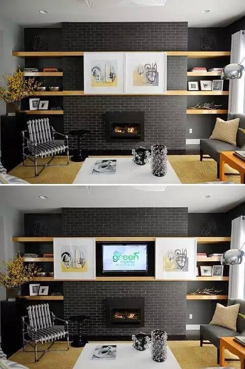 ▼墻上明明是兩幅畫,誰又能想到拉開了后面居然藏著一個電視機(jī)!平時不看電視的時候就關(guān)上”門”,還能防止灰塵弄臟電視,太有創(chuàng)意了吧!