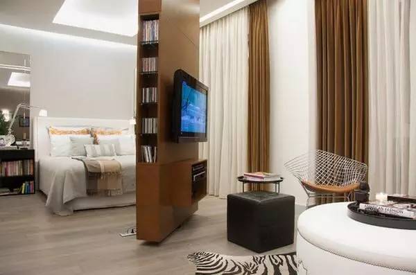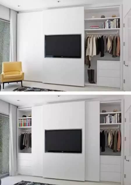 ▼臥室也可以借鑒這種技巧,把衣柜當(dāng)電視墻~有沒有覺得很有趣?