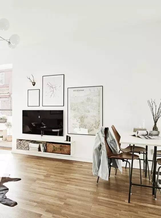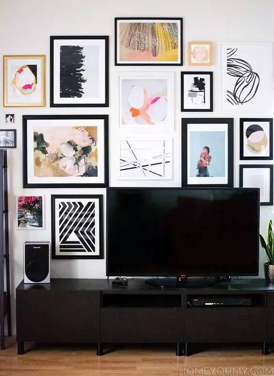 ▼或者干脆就在背景墻上掛滿畫,隨意擺放調(diào)整,如果看膩了還可以隨時換一幅~