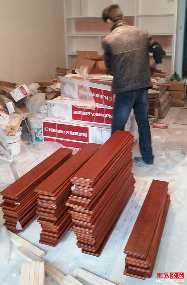 一、貨要提前送到,讓實木地板適應(yīng)一下鋪設(shè)環(huán)境的溫濕度,避免實木地板快速吸潮,造成地板起拱、漆面爆裂。我在家放了五天才鋪設(shè)。
