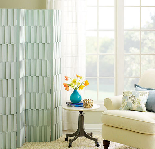 可以利用家中屏風(fēng),讓它具有獨特的變化感,通過墊片將整個屏風(fēng)都變得具有層次感。淡雅的色調(diào)和整個空間的格調(diào)都搭配得十分協(xié)調(diào)。