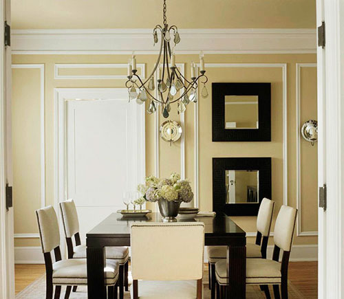在餐廳一旁的墻面,通過將鏡子和邊框線的有效結(jié)合,呈現(xiàn)出獨特的變化感,通過狹長型的邊框處理,具有拉升墻面的的視覺效果。